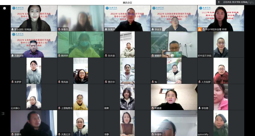 此次集中培训分为两个阶段:第一阶段为2023年1月11日-1月17日,第二阶段为1月28日-2月8日。bevictor伟德官网严格落实省教育厅有关“省培计划”项目实施的文件精神,结合前期调研结果,精心安排培训课程,内容丰富、形式多样,共组织专家讲座21场、名师课例观摩与研讨2场、异步分组研讨6场、听评课1场、网络教学1场。学员提交“美篇”、培训日志、培训总结、微课视频等一百余项,培训效果显著,为接下来的网络培训工作打下了良好的基础。
